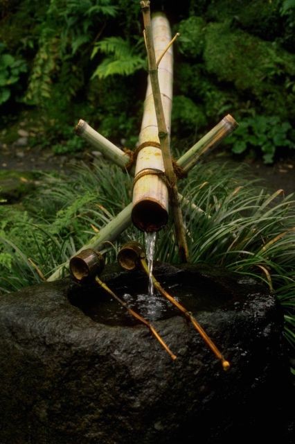 Langs het pad staan vaak een paar stenen lantaarns, maar niet teveel, en bij het theehuis staat een tsukubai of waterbassin waarin steeds vers water stroomt en men de handen en de mond kan reinigen voordat men deelneemt aan de ceremonie. Bij de tsukubai ligt dan een enkele mooie rode Camelliabloem ter verwelkoming van de gasten.